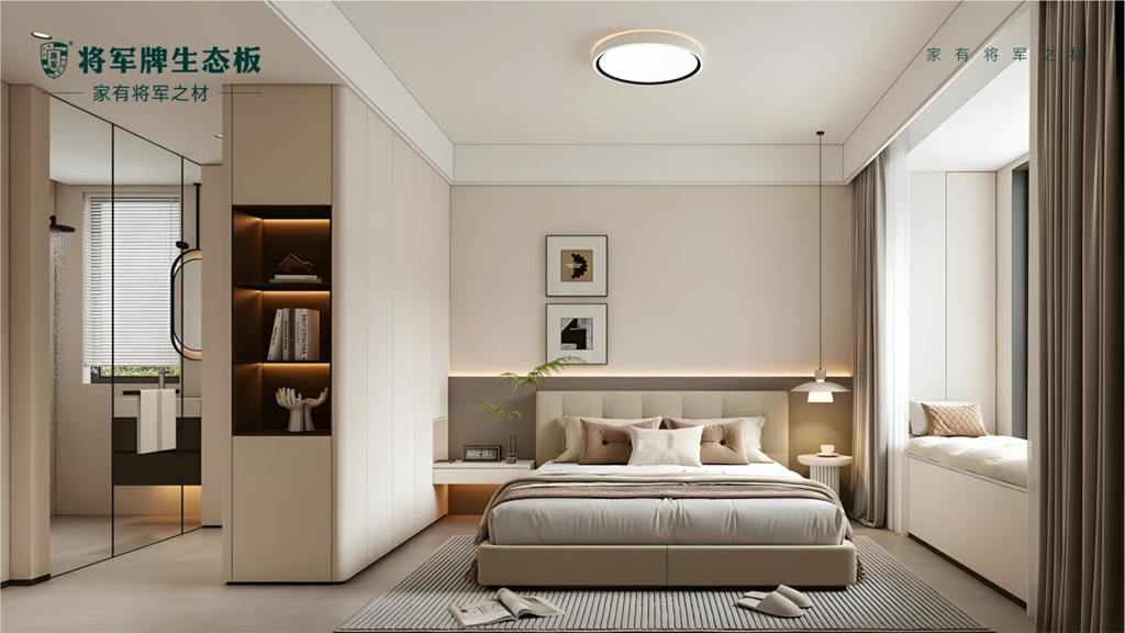 將軍牌生態(tài)板深諳色彩美學,以精準的色系把控貫穿主體結(jié)構(gòu)與細節(jié)裝飾,讓不同空間的過渡自然流暢。這種細膩的色彩把控,既營造出和諧統(tǒng)一的空間氛圍,又在統(tǒng)一中勾勒出豐富層次感——使現(xiàn)代簡約風格更顯干凈利落,令經(jīng)典輕奢風格愈顯高貴典雅。